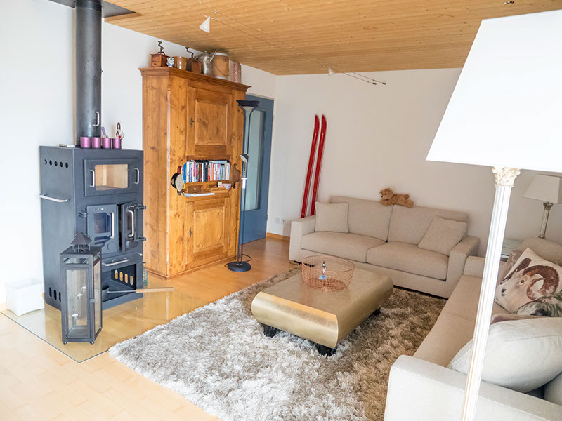 Wohnzimmer mit Schwedenofen 6 1/2 Zimmer Wohnung West